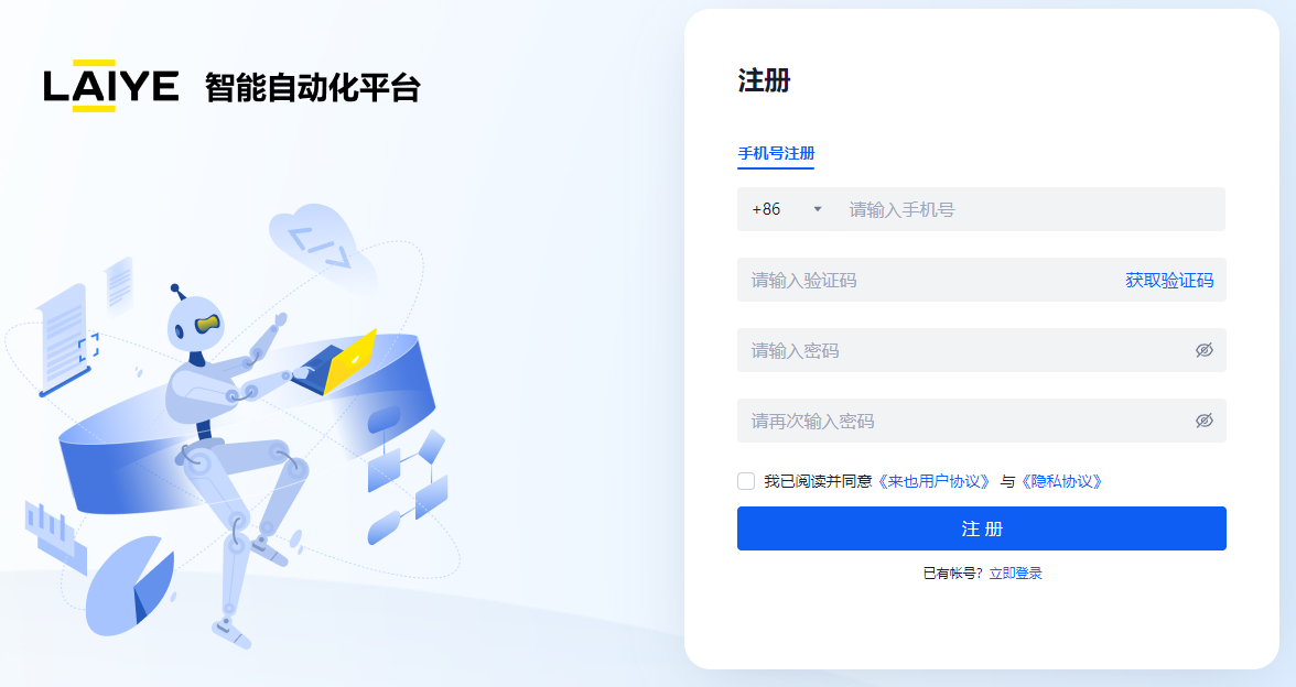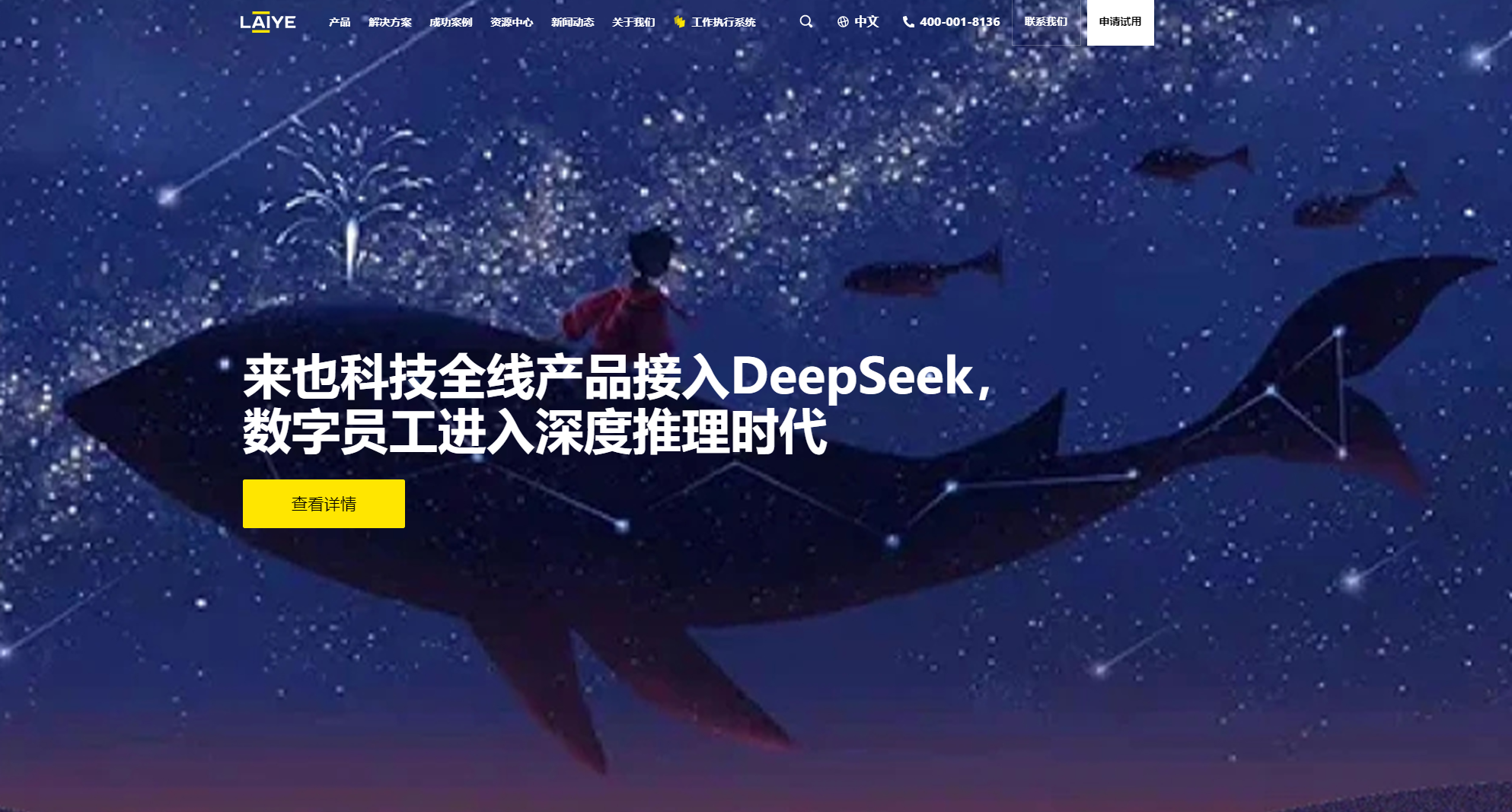 注册好后进入下面页面,吃水不忘挖井人,进官网看下:来也科技