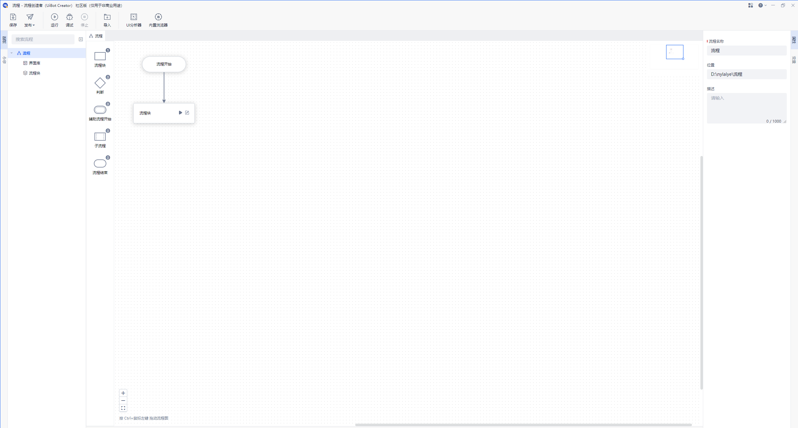 用来创建流程,可以使用拖拽的方式来搭建流程,子流程也可以通过代码的方式来开发。