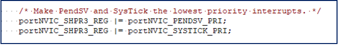 FreeRTOS主要是使用SHPR3寄存器对PendSV和Systick中断优先级进行设置(设置为最低优先级)