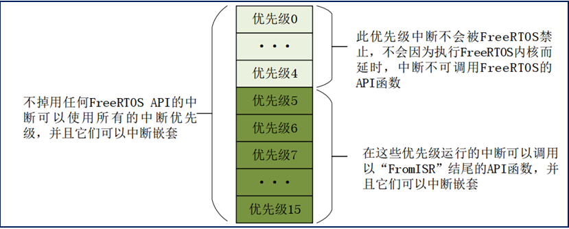 中断服务函数的优先级需在FreeRTOS所管理的范围内