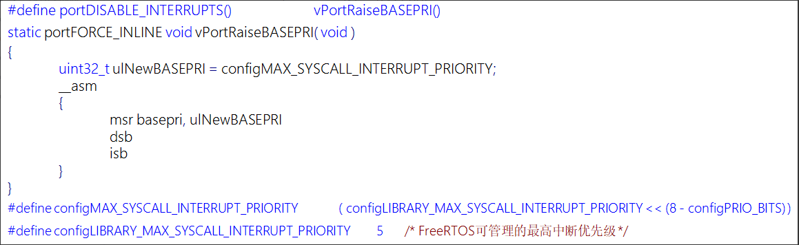 FreeRTOS所使用的中断管理就是利用的BASEPRI这个寄存器