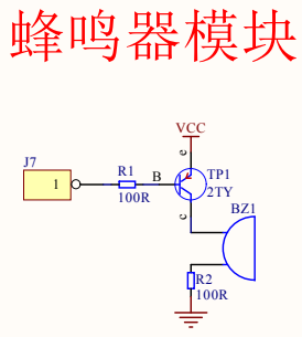 上图是普中51单片机开发板的原理图,J7连接的是芯片的一个I/O口。可以看到,当 J7 端子有一个高电平进来时,PNP 三极管TP1截止,蜂鸣器(BZ1)不得电,当 J7 端子有一个低电平进来时,PNP 三极管TP1 导通,蜂鸣器得电,如果 J7 端子有一个一定频率的脉冲信号(高低电平不断翻转)时,这个无源蜂鸣器发出声音。