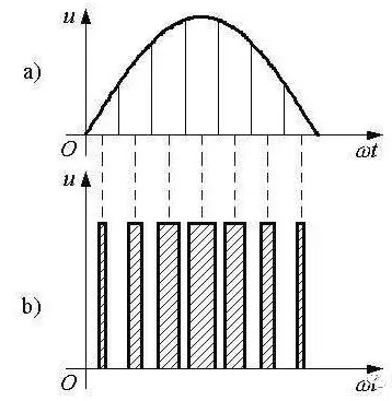 在 A/D 转换器中,因为输入的模拟信号在时间上是连续的,而输出的数字信号代码是离散的,所以 A/D 转换器在进行转换时,必须在一系列选定的瞬间(时间坐标轴上的一些规定点上)对输入的模拟信号采样,然后再把这些采样值转换为数字量。因此,一般的 A/D 转换过程是通过采样保持、量化和编码这三个步骤完成的,即首先对输入的模拟电压信号采样,采样结束后进入保持时间,在这段时间内将采样的电压量转化为数字量,并按一定的编码形式给出转换结果,然后开始下一次采样。
